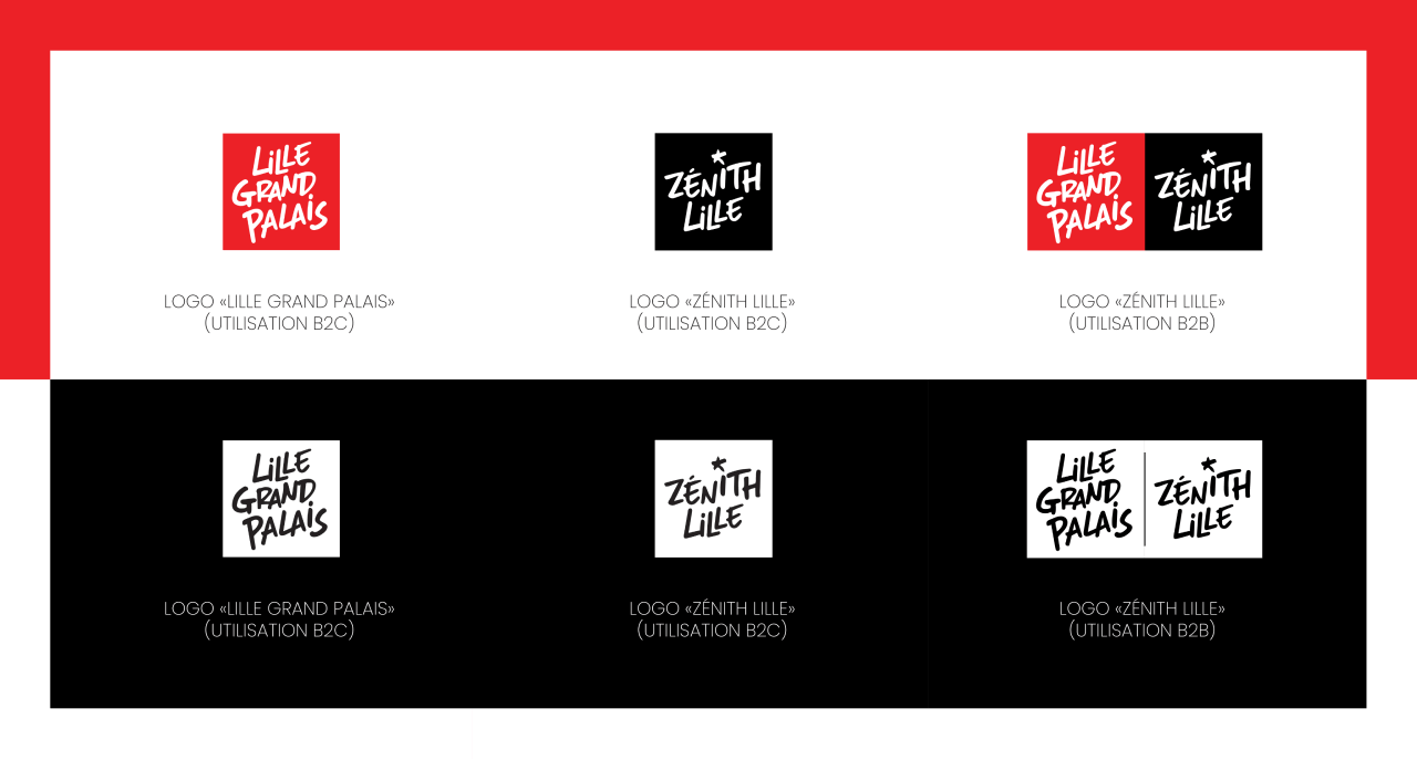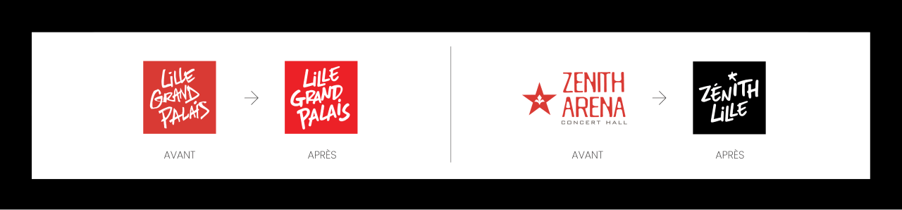 En rassemblant les 2 structures par le design. En repartant de l’identité Lille Grand Palais, nous avons affiné la typographie, la couleur et nous les avons appliquées au Zenith de Lille.