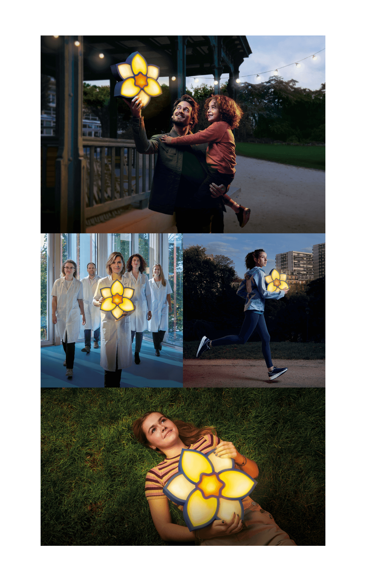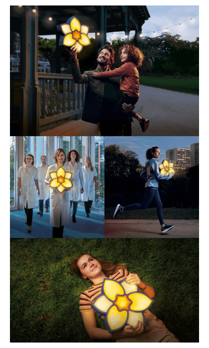 Grâce à vos dons, vous faites rayonner l’espoir. La Jonquille emblématique de l’Institut Curie s’illumine dans les bras des chercheurs, des malades et des donneurs.
