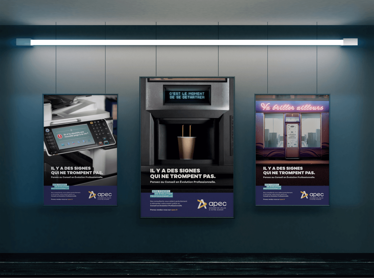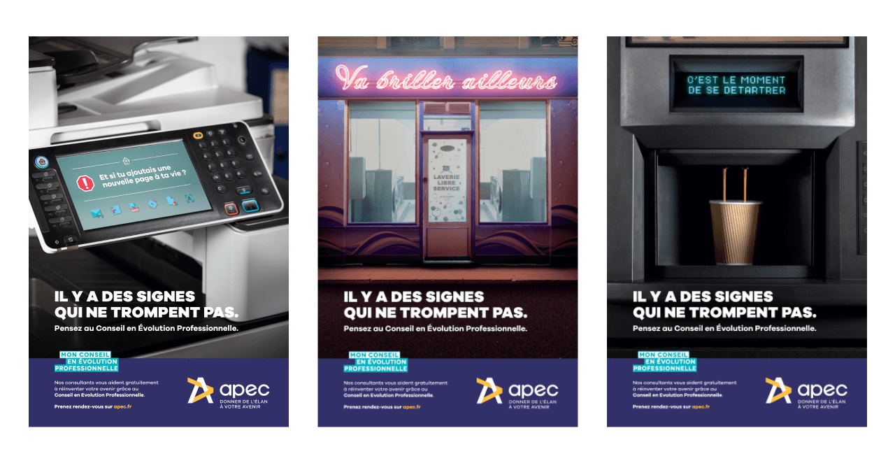 Il y a des signes qui ne trompent pas. La campagne montre des salariés victimes d’hallucinations. Ils voient des messages partout les incitant à faire le pas.