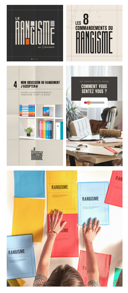 Exacompta crée Le Rangisme. La marque alimente ses réseaux sociaux de contenus et de produits pour créer une communauté unique alignée avec cette philosophie.