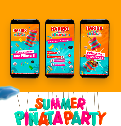 Avec une Piñata Summer Party aux couleurs de nos bonbons préférés. Quel plaisir de pouvoir faire pleuvoir les bonbons en plein été. Une activation délicieusement jouissive et amusante !