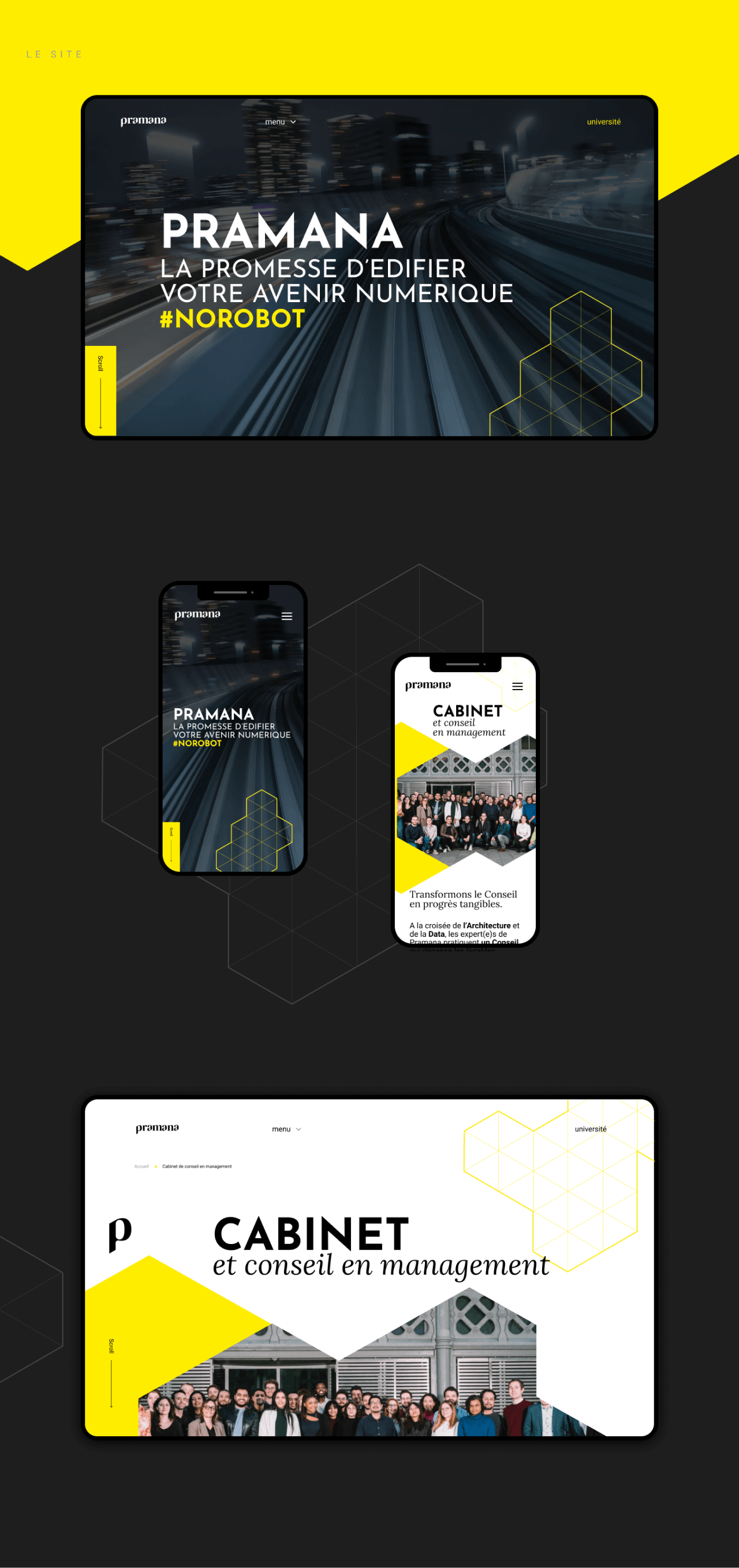 Cette identité unique s’applique pour les 3 départements Pramana : data, university, formation.